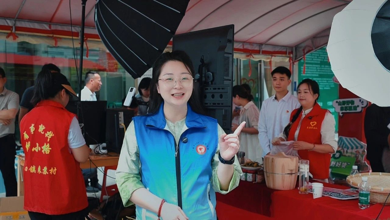 江西“四个100”文化导师助力修水县山口镇集市通过线下摆摊+线上直播的形式搭建消费助农平台。